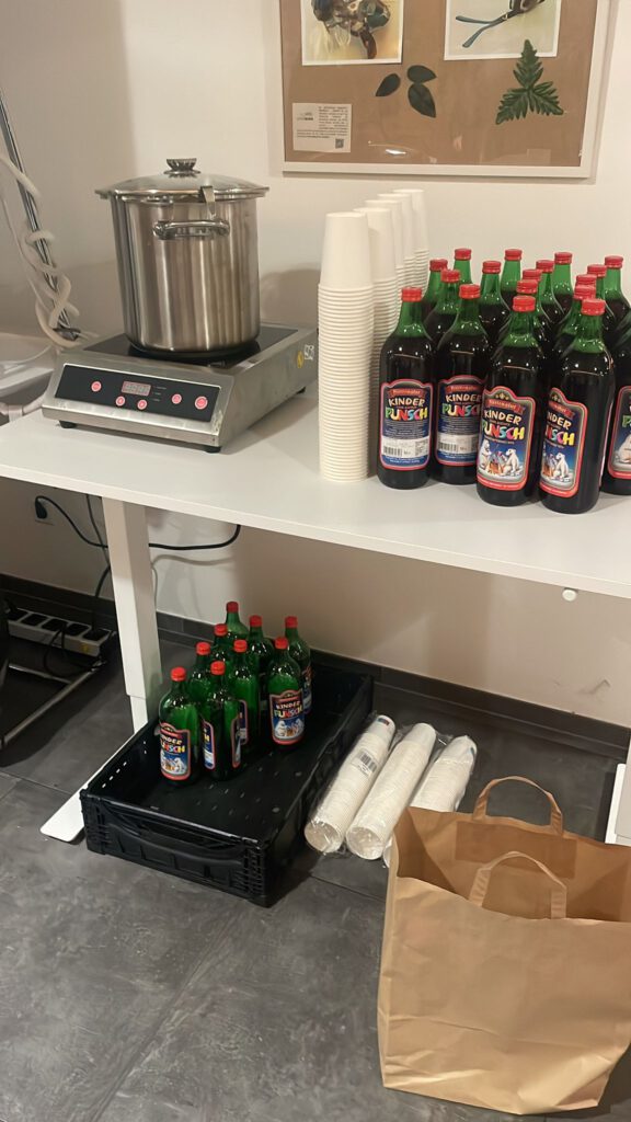 – **Getränke:** Spenden Sie Kaffee, Tee, Kakao oder andere warme Getränke, die während der Feier serviert werden können.